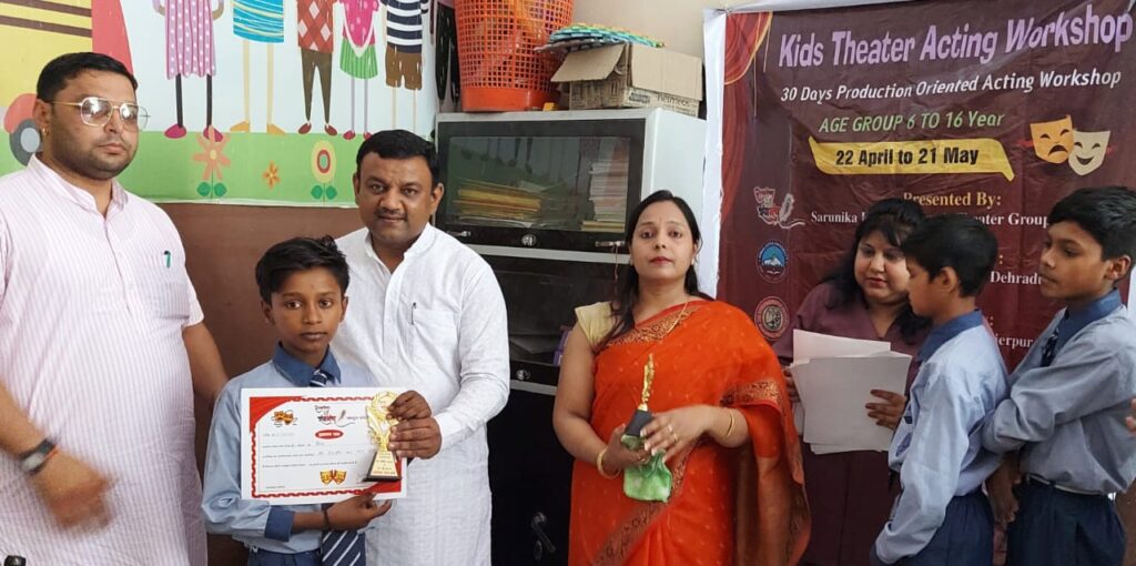 रुड़की।जय कृष्णा पब्लिक स्कूल में तीस दिवसीय बाल नाटक कार्यशाला का समापन हिमालयन यूनिवर्सिटी के विशेषज्ञ सरूणिका शर्मा के द्वारा मासिक प्रशिक्षण के साथ हुआ।कार्यशाला के समापन अवसर पर अतिथि के रूप में बोलते हुए निवर्तमान मेयर गौरव गोयल ने कहा कि विशेषज्ञ सरुनिका शर्मा द्वारा बच्चों को कड़ी मेहनत कर नाट्य कला के क्षेत्र में बेहतर प्रशिक्षण दिया गया,जिससे बच्चों में कला के प्रति उनकी प्रतिभा को निखारने का अवसर मिला।भारतेंदु हरिश्चंद्र द्वारा लिखा गया नाटक “अंधेर नगरी-चौपट राजा” का मंचन मन-मस्तिष्क को छू लेने वाला रहा।बच्चों ने बहुत ही सुंदर प्रस्तुति दी, जिसने सभी का मन मोहा।श्रीमती रीमा बंसल ने बाल नाटक कार्यशाला में बच्चों को नाट्य विद्या के गुरु सरुनिका शर्मा द्वारा सिखाए गए गुर की प्रशंसा की।इस अवसर पर प्रधानाचार्य श्रीमती रुचिका राणा,अजय प्रधान,अनूप शर्मा,नैना,जूबी,निहाल,आकाश,फरहान,अकुल,अरशद,साक्षी,आदित्य जैन,सुभान,लव कुश, फैजाद आदि प्रमुख रूप से मौजूद है।