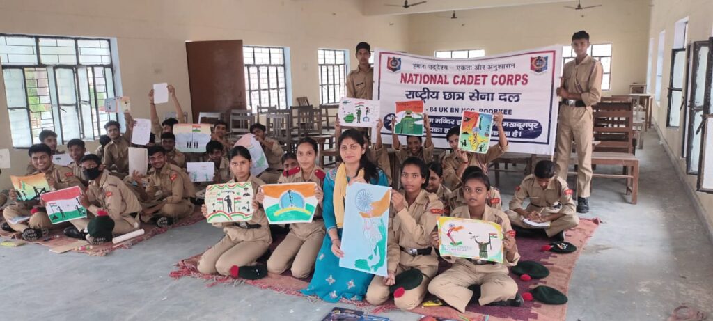 झबरेड़ा..5 अगस्त 2024 को 84 उत्तराखंड वाहिनी एन सी सी रुड़की के कमान अधिकारी कर्नल आर. रमेश के निर्देशानुसार श्री सत्यनारायण मंदिर इंटर कॉलेज मखदूमपुर, हरिद्वार में “कारगिल विजय दिवस” कार्यक्रम के अंतर्गत “रंग दे वीर” चित्रकला प्रतियोगिता का आयोजन किया गया सभी कैडेट्स ने कारगिल युद्ध के वीरों को श्रद्धांजलि देते हुए पेंटिंग बनाई । इस अवसर पर विद्यालय के उप प्रधानाचार्य श्री मैनपाल सिंह ने कैडेट्स को कारगिल युद्ध के बारे में अवगत कराया और बताया कि किस तरह हमारे वीरों ने अपनी जान न्योछावर कर हमारे देश की रक्षा की । कार्यक्रम में सभी कैडेट्स ने अपनी सहभागिता की तथा कार्यक्रम के आयोजन में बटालियन के कार्यालय अधीक्षक प्रशिक्षण रवि कपूर का विशेष सहयोग रहा । इस अवसर पर विद्यालय की कनिष्ठ स्कंध एनसीसी अधिकारी थर्ड ऑफिसर ईशा चौधरी,अस्मिता तोमर, वर्षा देवी, अंजलि अग्रवाल ,सूरज चौधरी व विद्यालय का समस्त स्टाफ मौजूद रहा।