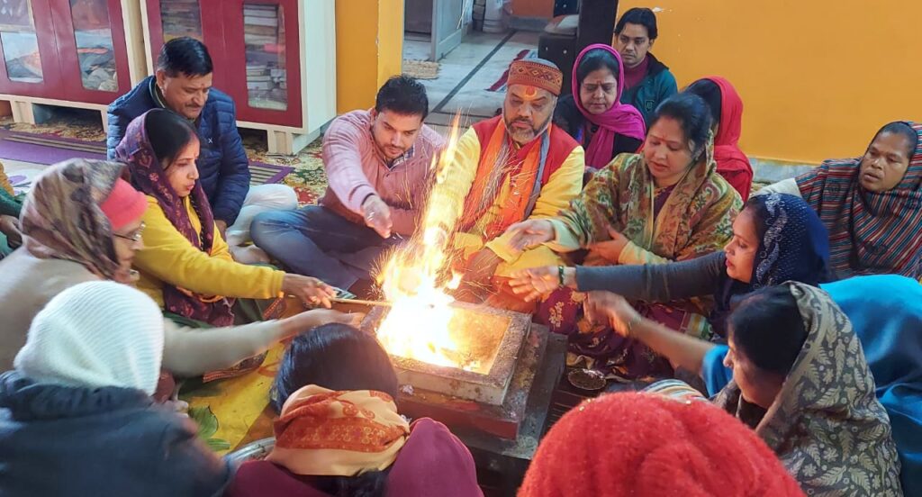 रुड़की।ज्योतिष गुरुकुलम में नववर्ष के उपलक्ष में राष्ट्र कल्याण के लिए महामृत्युंजय यज्ञ किया गया,जिसमें 1008 आहुतियां महामृत्युंजय मंत्र द्वारा डाली गई।राष्ट्र कल्याण की कामना की गई और सभी की सुख-समृद्धि की कामना की गई।प्रसिद्ध ज्योतिषाचार्य आचार्य रमेश सेमवाल जी महाराज ने कहा कि यज्ञ करने से सभी देवता प्रसन्न होते हैं।देवताओं की प्रसन्न होने से मनुष्य का कल्याण होता है।कलयुग में भगवान की पूजा और यज्ञ का विशेष महत्व है।यज्ञ करने से देवताओं की विशेष कृपा मिलती है।प्राण,वायु,ऊर्जा प्राप्त होती है।उन्होंने कहा कि हमें निरंतर भगवान शंकर की आराधना उपासना करनी चाहिए।भगवान शंकर मृत्यु के देवता हैं।महामृत्युंजय मंत्र प्राणों की रक्षा करता है,इसलिए निरंतर देवाधिदेव महादेव की आराधना,साधना व उपासना करनी चाहिए,जिससे प्रत्येक मनुष्य का कल्याण होता है।कलयुग में भक्ति ही श्रेष्ठ है।नववर्ष-2025 सबके लिए मंगलदायी होने के लिए महामृत्युंजय मंत्र का पाठ,हवन किया गया और प्रसाद वितरण किया गया।भगवान शंकर का रुद्राभिषेक भी किया गया।इस अवसर पर डॉक्टर अर्पित सैनी,कांग्रेस रुड़की मेयर प्रत्याशी पूजा गुप्ता,निवर्तमान मेयर गौरव गोयल,भारतीय ब्राह्मण समाज के अध्यक्ष सतीश शर्मा,राधा भटनागर,राधा भंडारी, सुलक्षणा सेमवाल,पूजा वर्मा,वंदना जायसवाल,प्रतीक्षा वर्मा,अदिति सेमवाल,इंद्रमणि सेमवाल,इमरान देशभक्त,मोनिका,सोनिया वर्मा,रेनू शर्मा,अंजू सिंघल,मनीषा मित्तल,राधा वर्मा,विकास शर्मा आदि उपस्थित रहे।