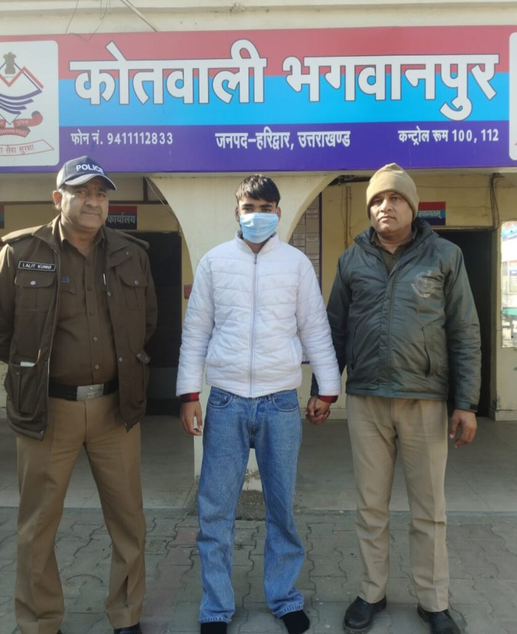 भगवानपुर.. 8 जनवरी को भगवानपुर स्थित नंबरदार वाली गली निवासी आदित्य राना पर मारने की नीयत से फायर झोंकने वाले अभियुक्त को भगवानपुर पुलिस ने 10 दिन बाद गिरफ्तार कर सफलता हासिल की हे। जानकारी देते हुए वरिष्ठ उप निरीक्षक भगवानपुर रमेश सैनी ने बताया बीती 8 जनवरी को आदित्य राणा निवासी भगवानपुर ने मोंटी निवासी प्रताप कालोनी, ऋतिक निवासी रोहालकी दयालपुर भगवानपुर के नाम मारने की नियत से फायर झोंकने का मुकदमा पंजीकृत कराया। उन्होंने बताया मुखबिर तंत्र के द्वारा भगवानपुर पुलिस ने अनमोल उर्फ प्रेमी उर्फ मोंटी को गिरफ्तार करने में सफलता हासिल की हे।